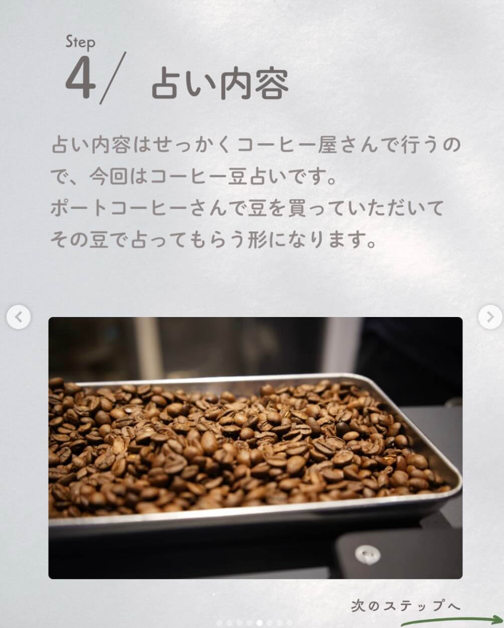 「へぇー、今度はコーヒー店でコーヒー豆占いをするんだ!(自分)」と、投稿を見て初めて知りました。笑