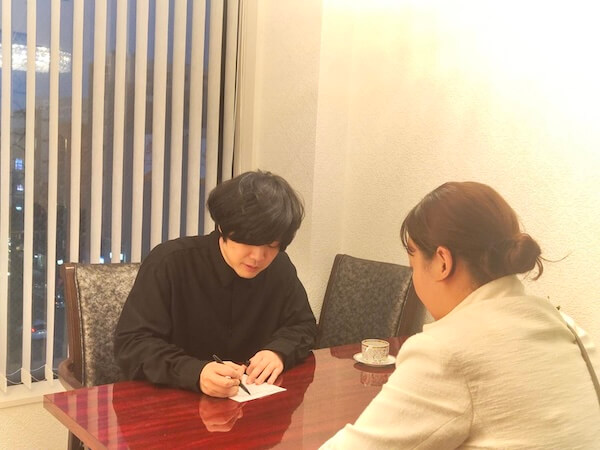 お一人10分ほどでお時間が限られていたので、この日は何も道具も占術も使わずに、着席された瞬間から鑑定用紙に占った結果を書き始めるスタイルでやっていきました。最近はだいたいこういう感じで、お部屋に入って来られた段階でだいたい占い終わっているので、皆様困惑されていました。笑